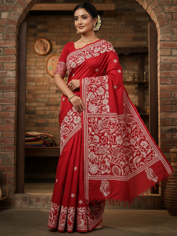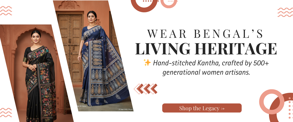 Authentic Kantha stitch sarees with timeless style.